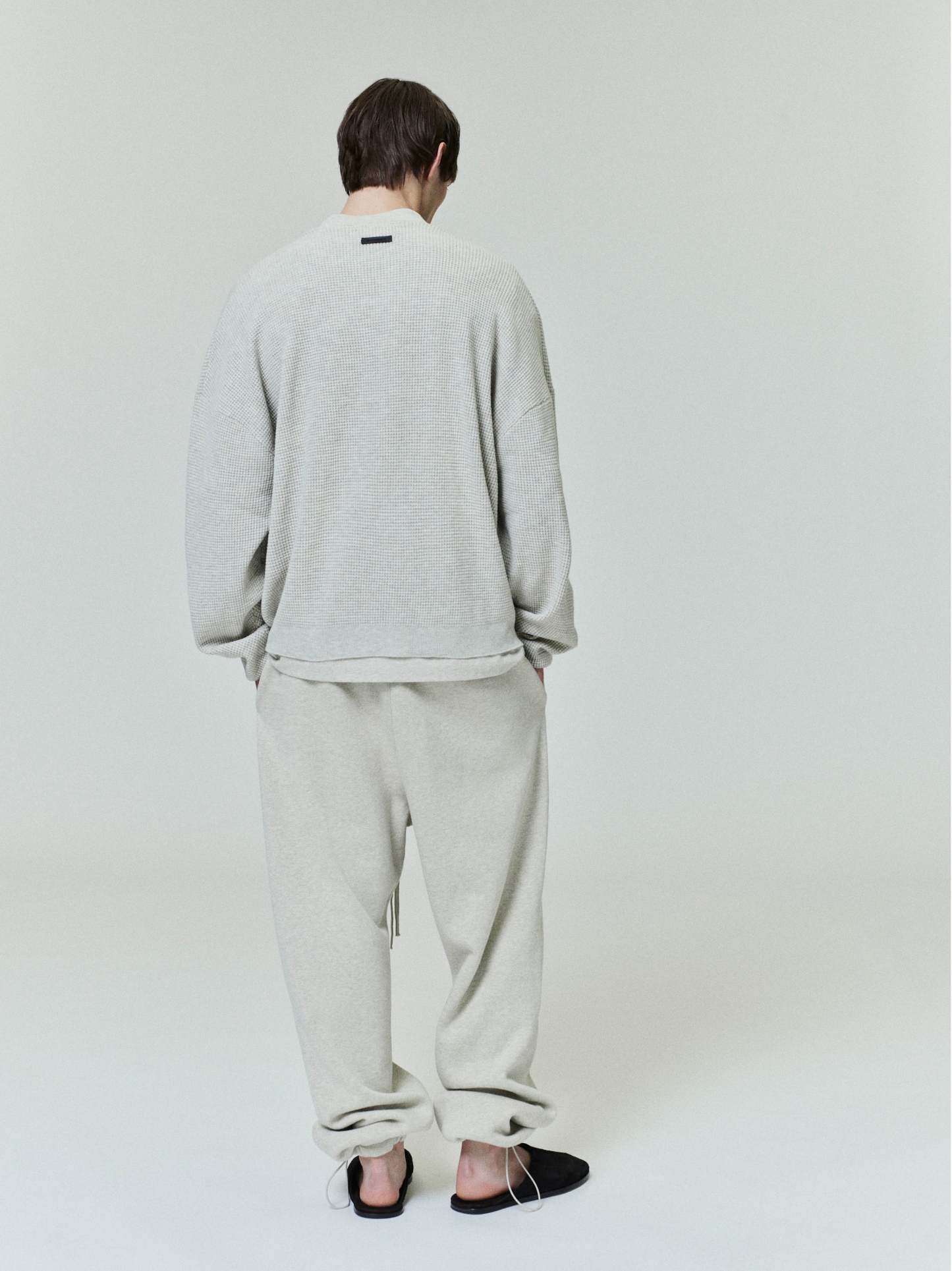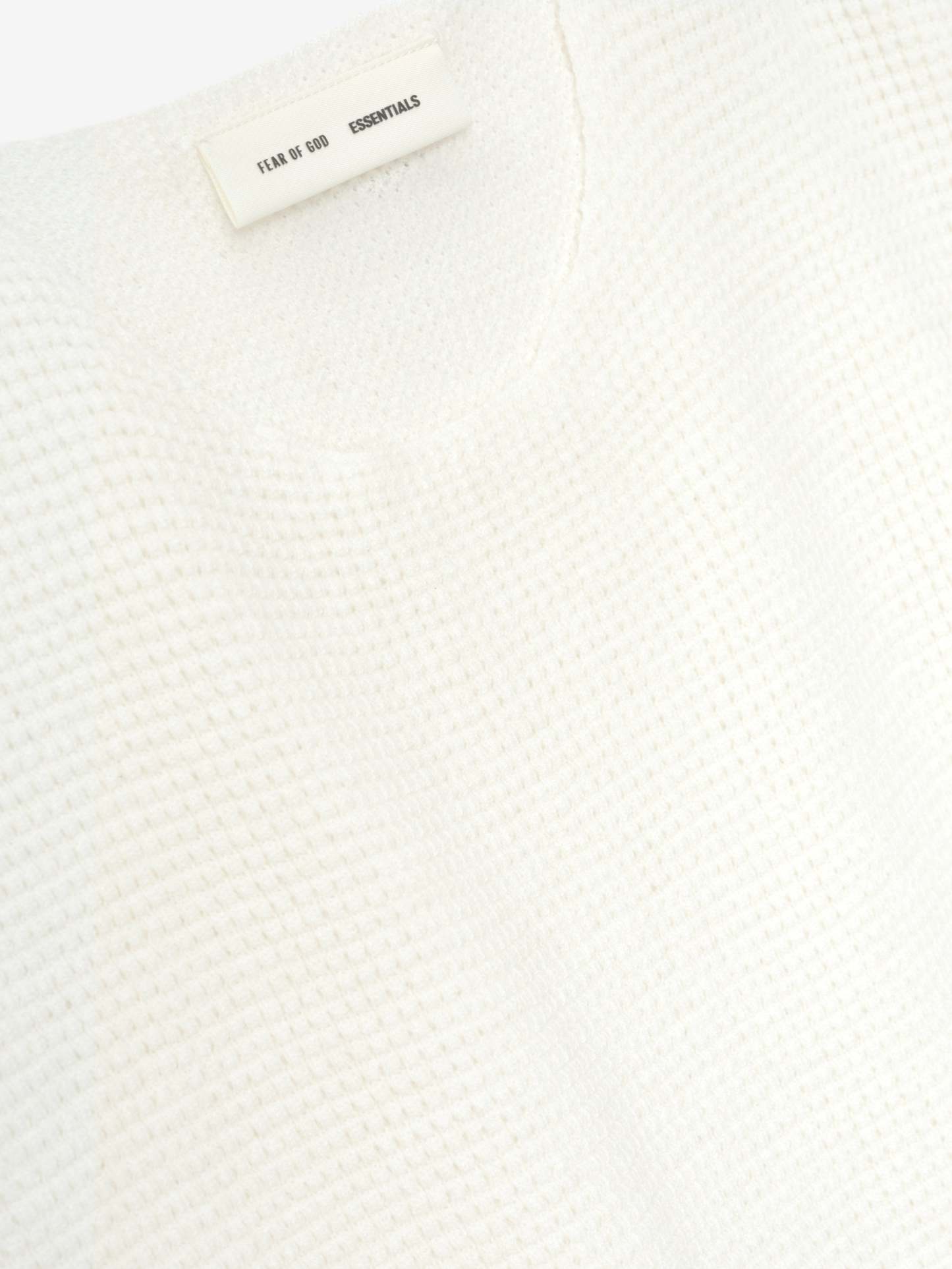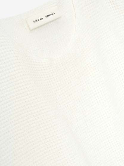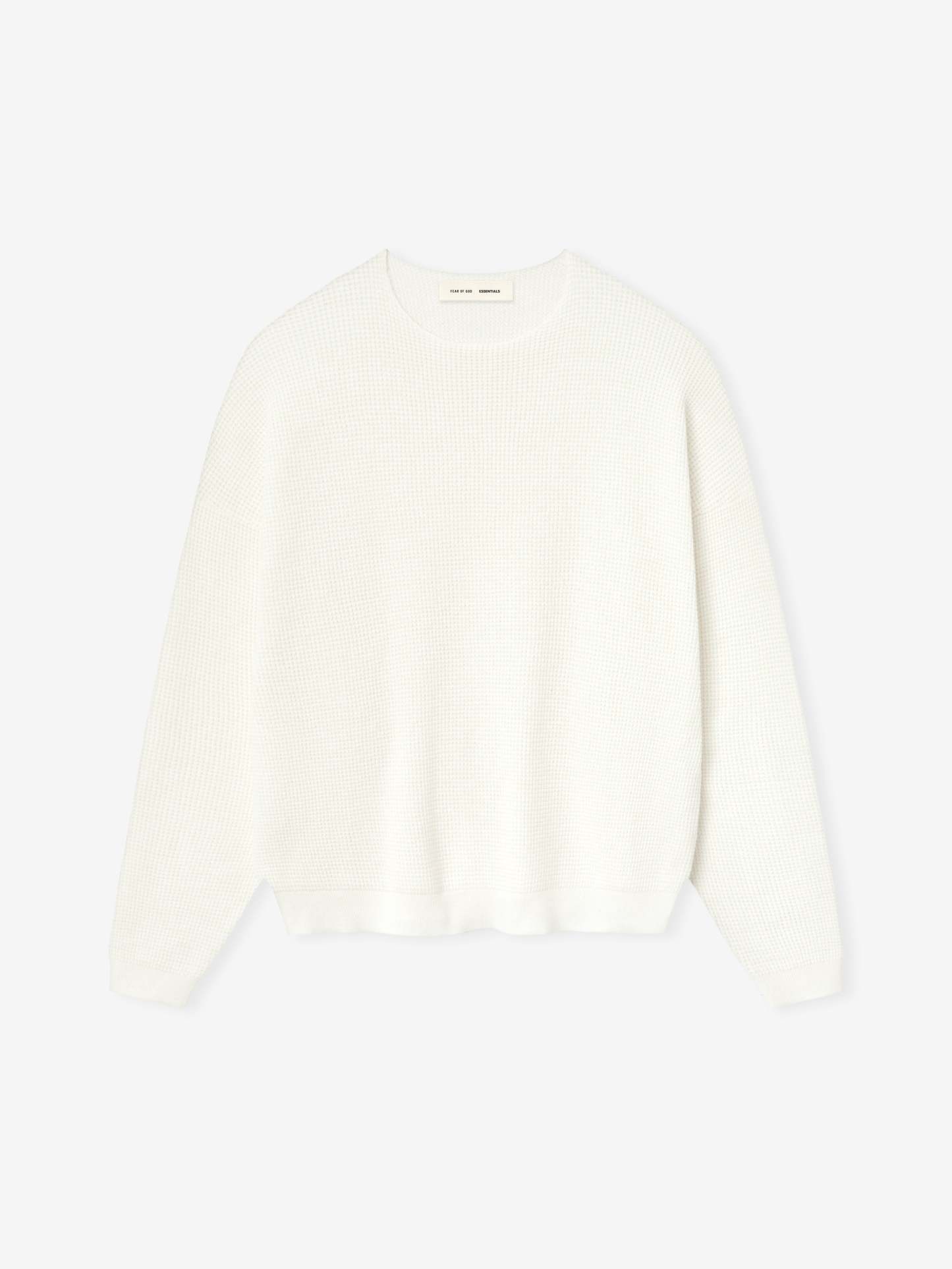 The Waffle Crewneck Sweater is made from heavyweight poly-nylon knit for warmth and stretch comfort. The fit is relaxed with drop shoulders, rib knit cuffs and waist hem. A "Fear of God Essentials" rubberized label is stitched at the back collar.