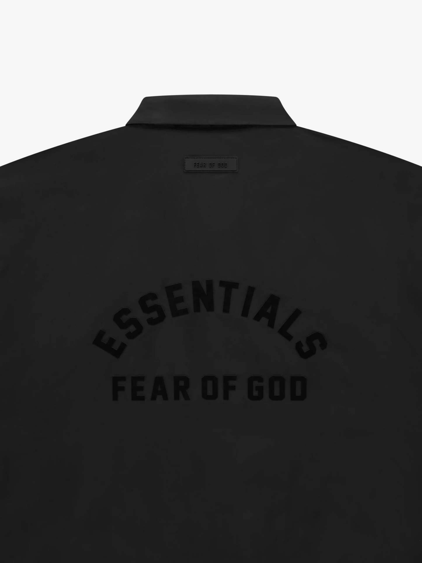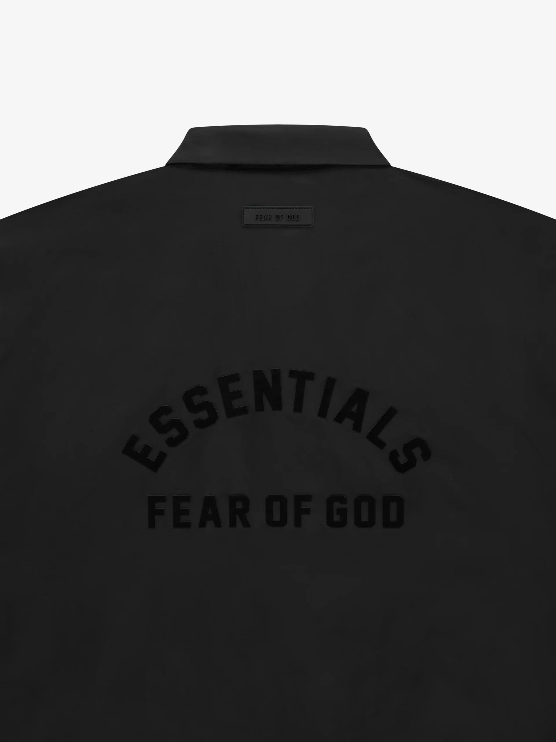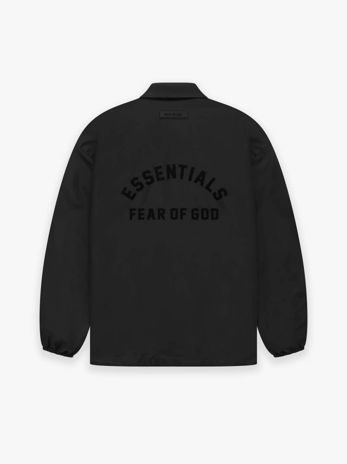 The Essentials coach jacket is made in a Taslan nylon and takes cues from the original sports style. The curved Essentials Fear of God logo on the back is vintage-inspired but updated in a rubberized soft-touch applique. Additional details include a shirt collar, snap button closure, side seam pockets, elasticated cuffs, and drawstring at the waist hem. A new Fear of God rubberized label is at the back collar.