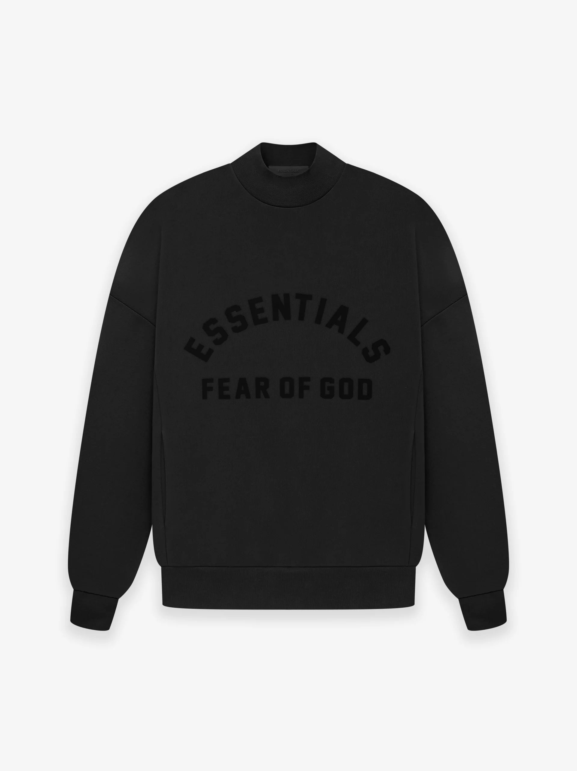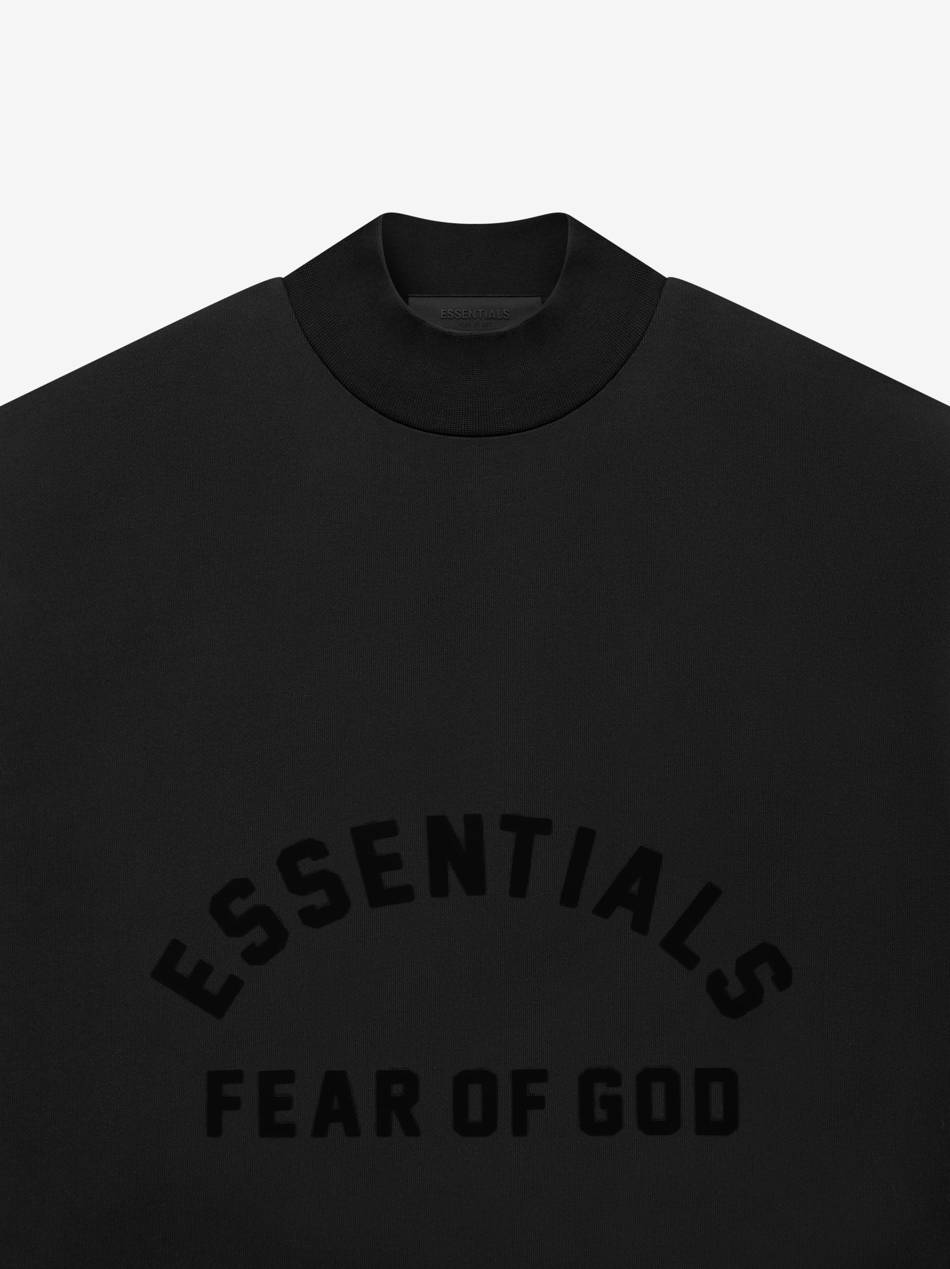 The Essentials crewneck has been redesigned with increased volume in the body and sleeves, creating a soft, round, cropped silhouette. The revised higher rib-knit collar, cuff, and waistband frame the piece. Side seam pockets provide a new functional detail. The curved Essentials Fear of God logo is vintage-inspired but updated in a rubberized soft-touch applique. A new Fear of God rubberized label is at the back collar.