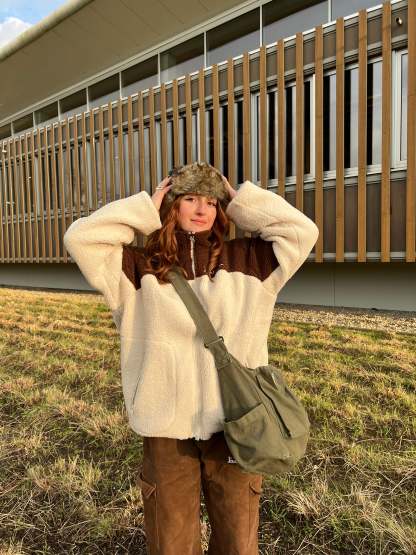 Mona is 1.68m and wearing a size L, creating an oversize look