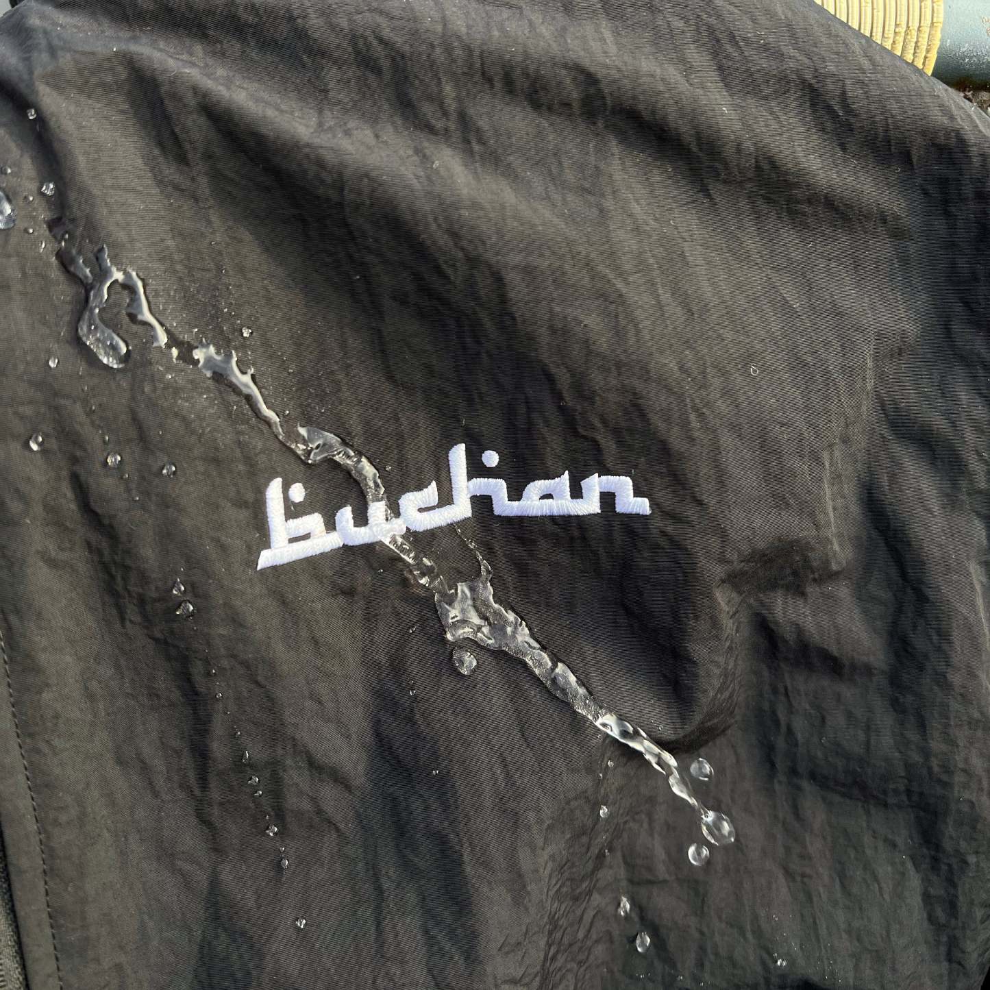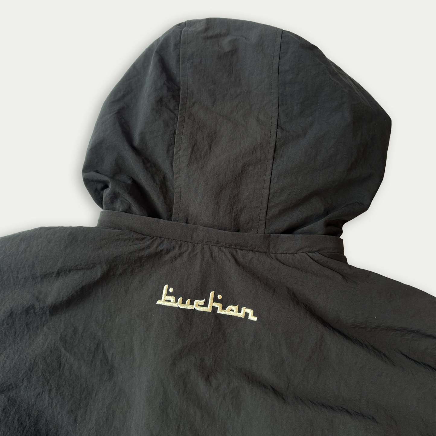 - IRON LOW OR STEAM (ONLY THE WINDPROOF SIDE)