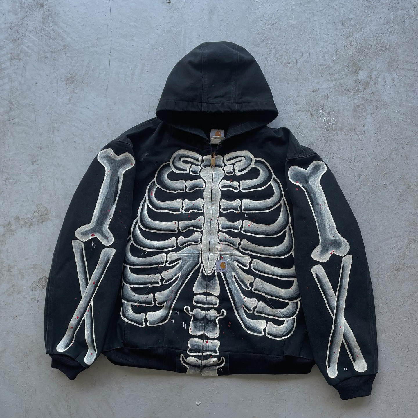 Street hand-painted skeleton zipper thickened jacket
